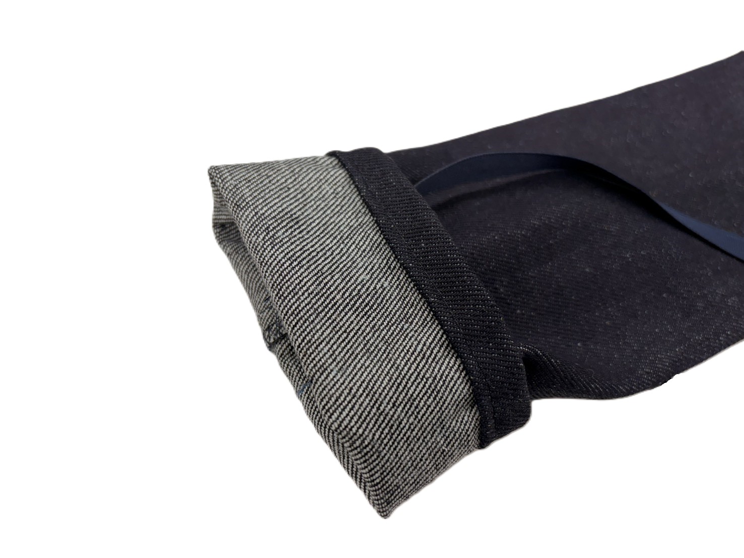 デニム生地を日本国内で加工。クッション性はありませんが、リュックやカバンに入れて運ぶ際のキズ付き防止や保管の際の日焼け防止に効果的です。
