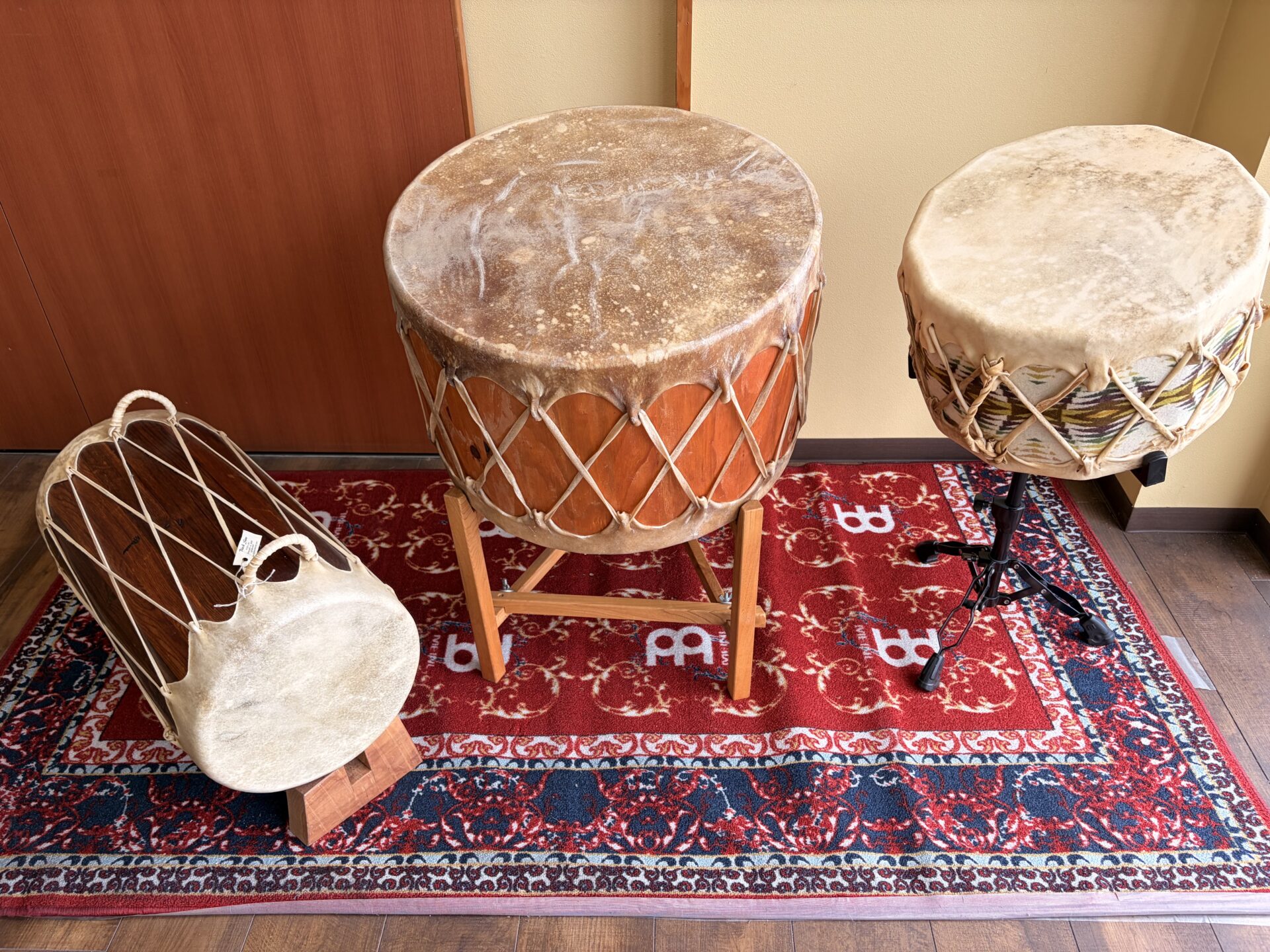 フープドラム・パウワウドラムは生皮から出来ています。